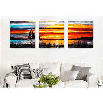 Malen nach Zahlen Segelboot im Sonnenuntergang Triptychon
