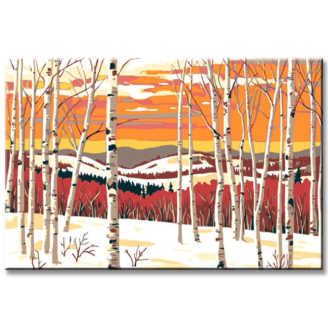 Malen nach Zahlen Kunst Natur kahle Bäume in Winterlandschaft