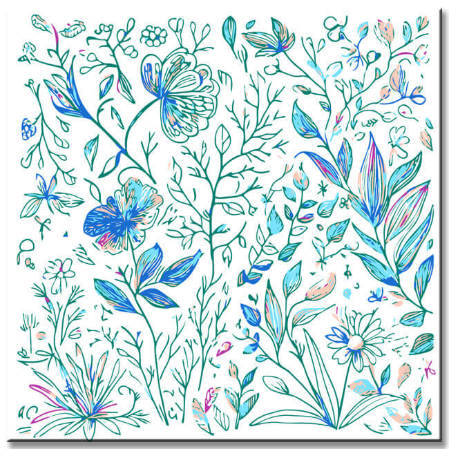 Malen nach Zahlen Pflanzen blau weiss