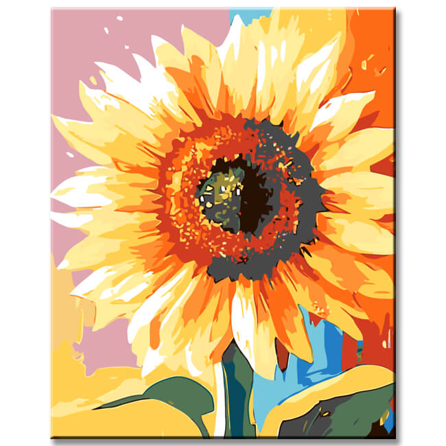 Malen nach Zahlen für Erwachsene Sonnenblume in Regenbogenfarben