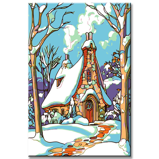 Malen nach Zahlen Kunst Illustration Schneebedecktes Haus