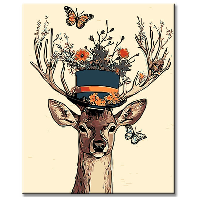 Malen nach Zahlen Hirsch mit Schmetterlingen