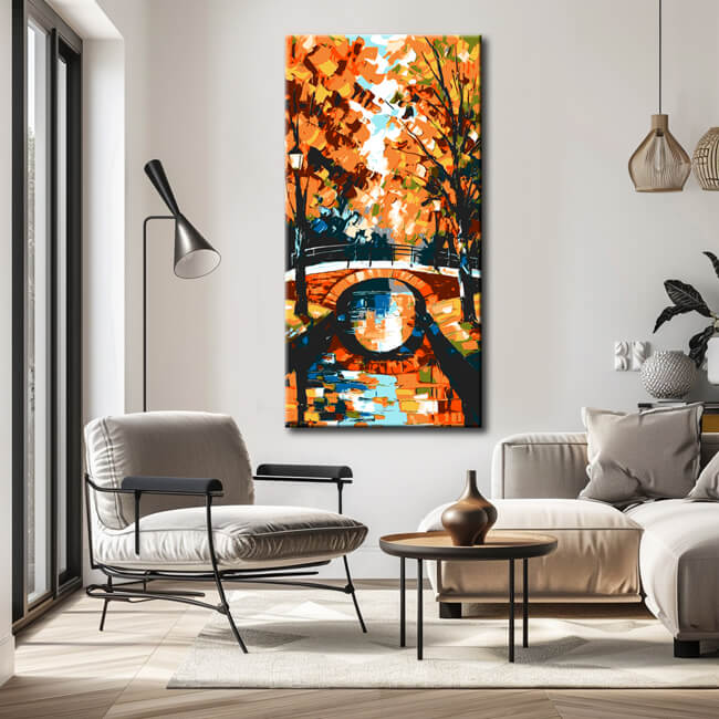 Malen nach Zahlen Kunst Natur Herbstlandschaft mit Fluss und Brücke
