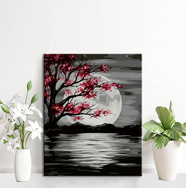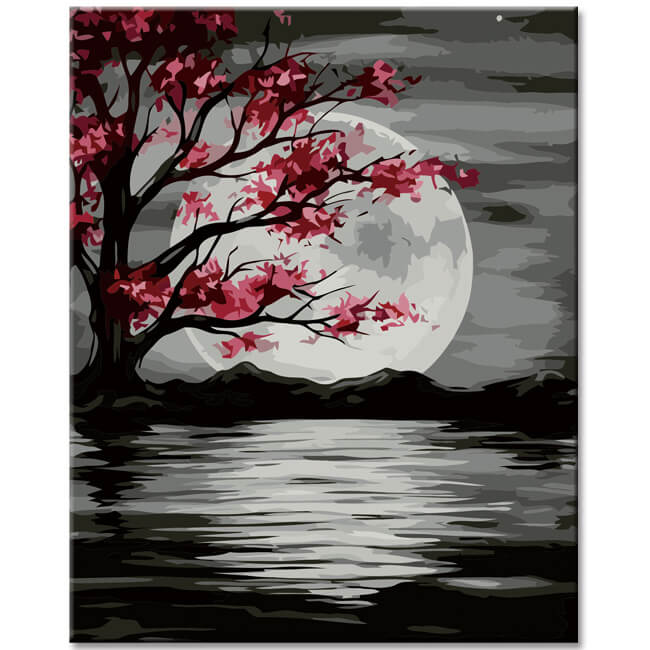 Malen nach Zahlen Schwarz Weiss Mond Nachtstimmung