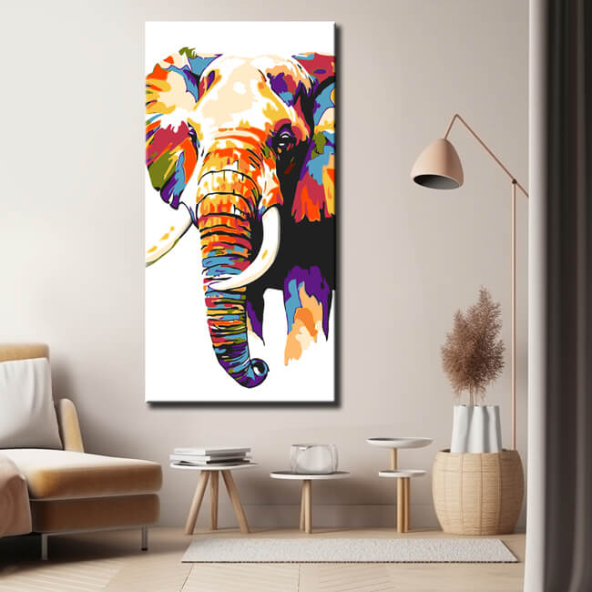 Malen nach Zahlen Kunst Tier Elefant mit Buntem Kopf und Rüssel