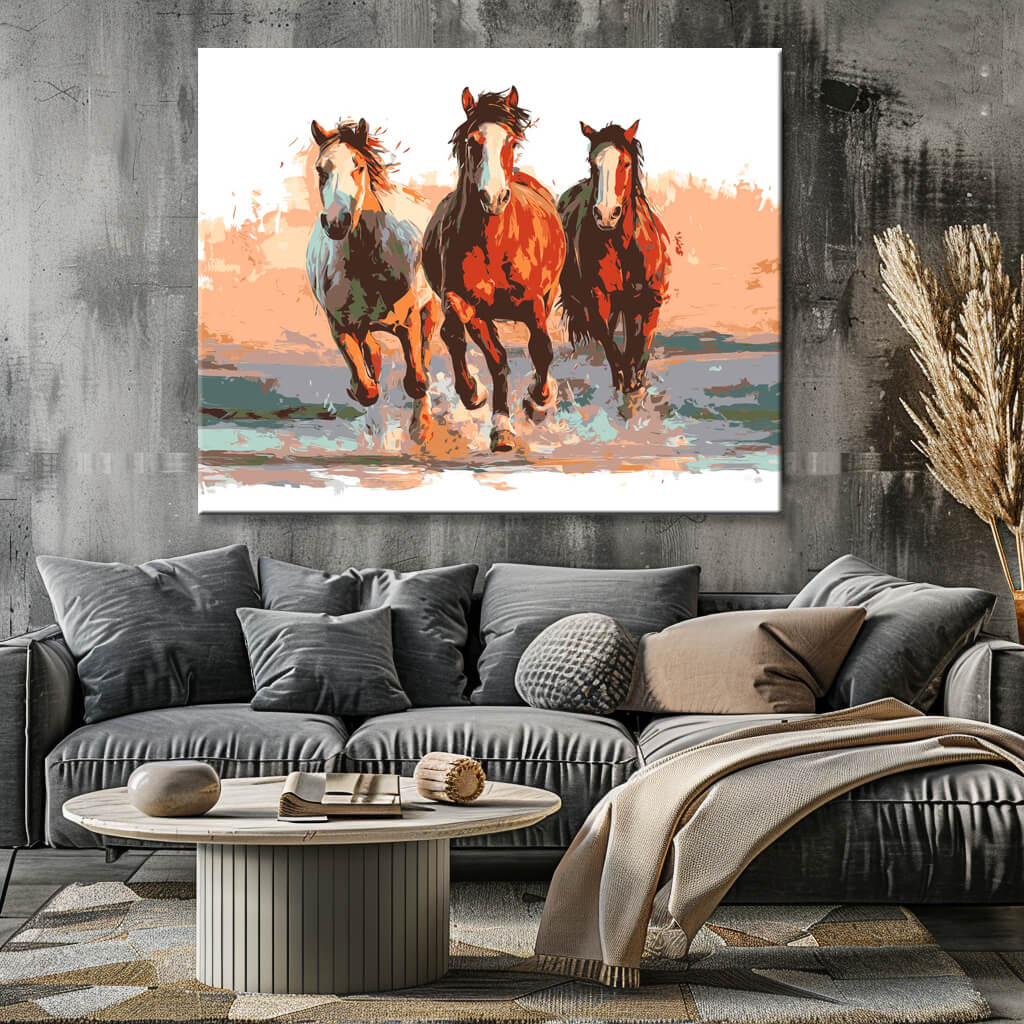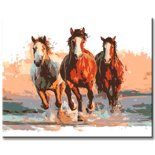 Malen nach Zahlen Tiere Pferdeherde im galopp
