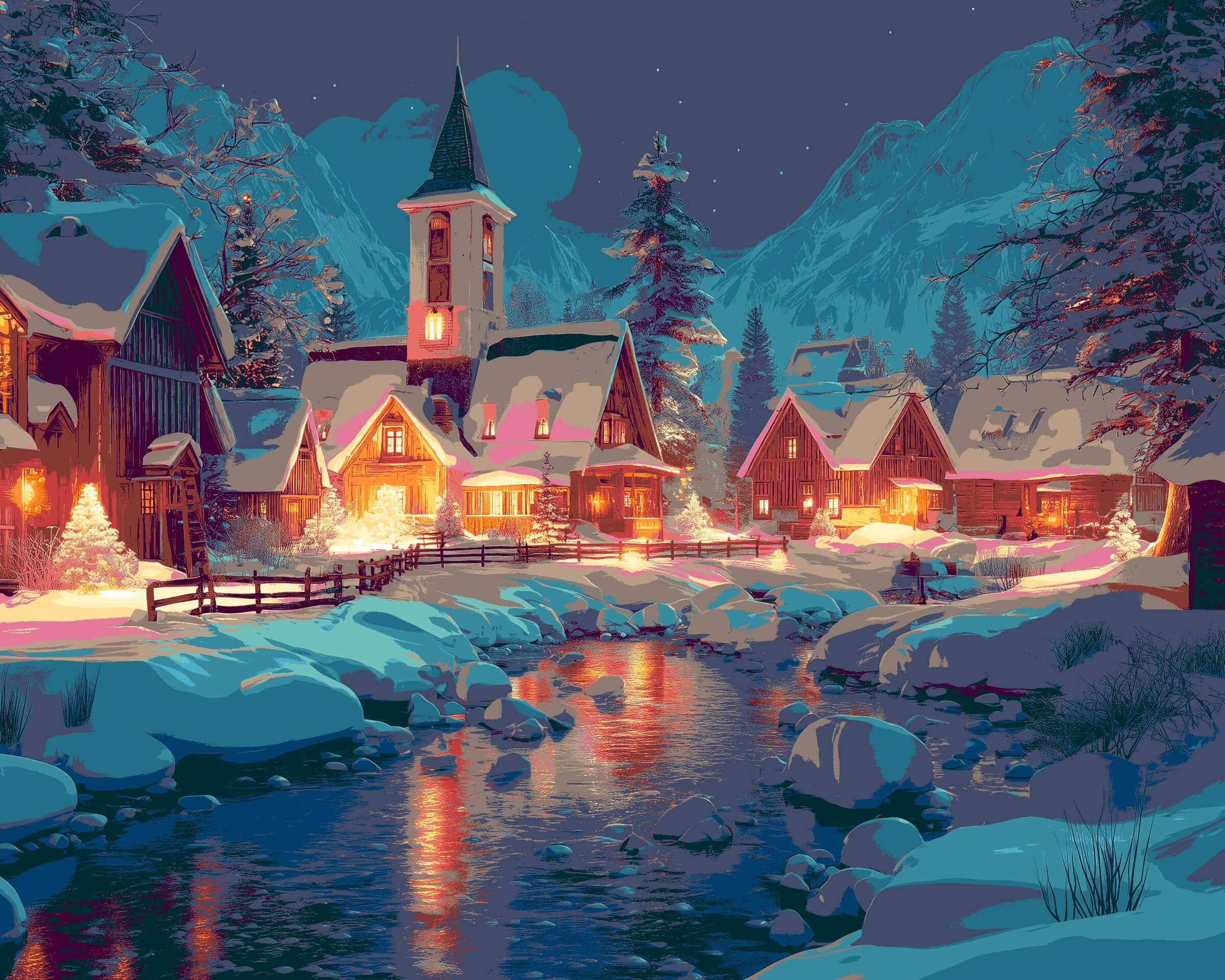 Malen nach Zahlen für Erwachsene Bergdorf im Schnee