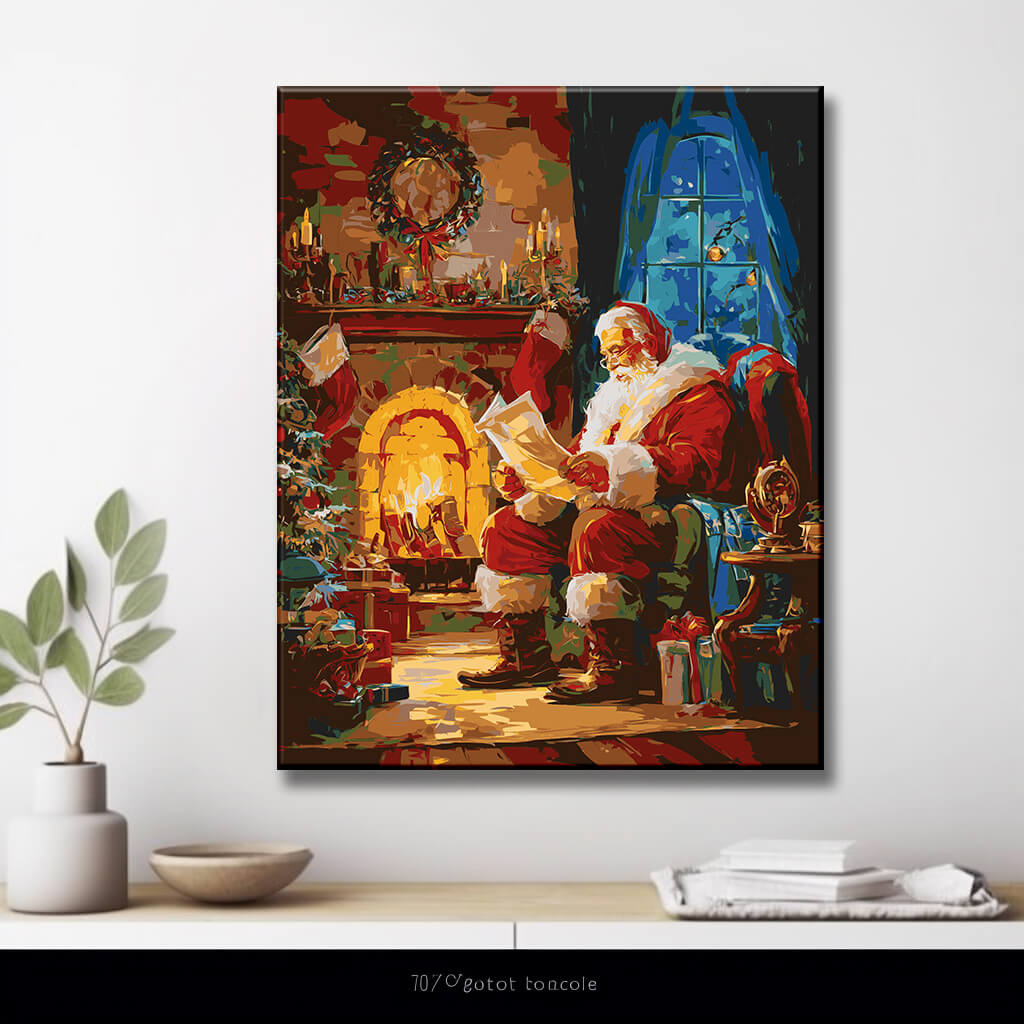 Malen nach Zahlen WeihnachstMann am Kamin