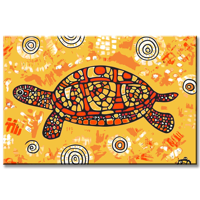 Malen nach Zahlen Kunst Tier Braune Schildkröte auf Gelben Untergrund