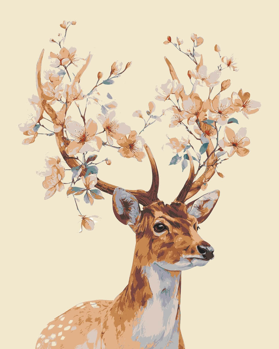 Malen nach Zahlen für Erwachsene Tiere Elch mit Blüten