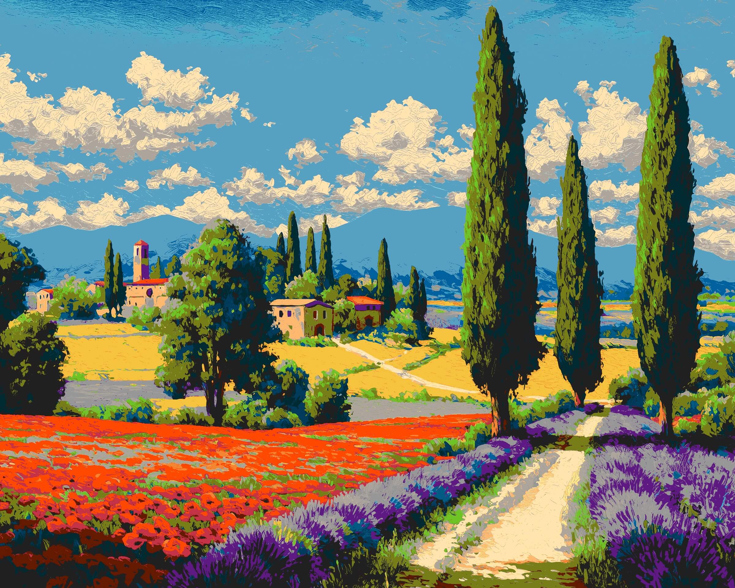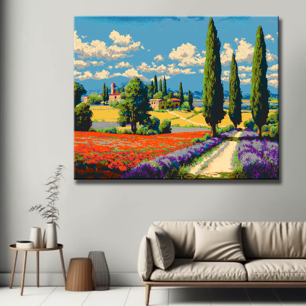 Malen nach Zahlen für Erwachsene Pinien und Lavendelfeld