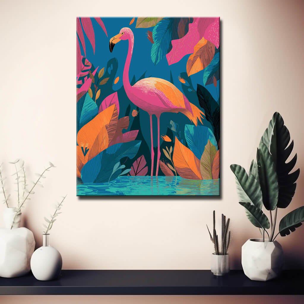 Malen nach Zahlen Flamingo Wald