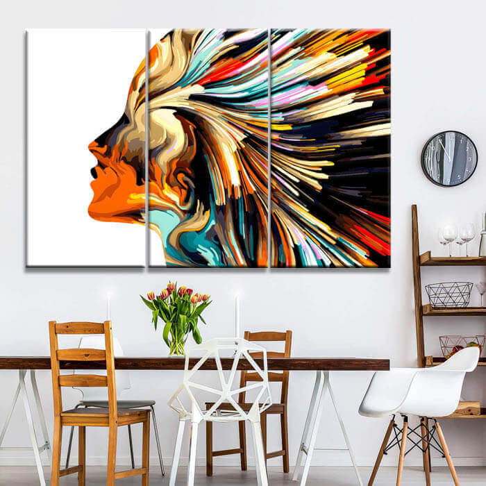 Malen nach Zahlen Kunst Frau mit bunten Farben in den Haaren 3-teilig