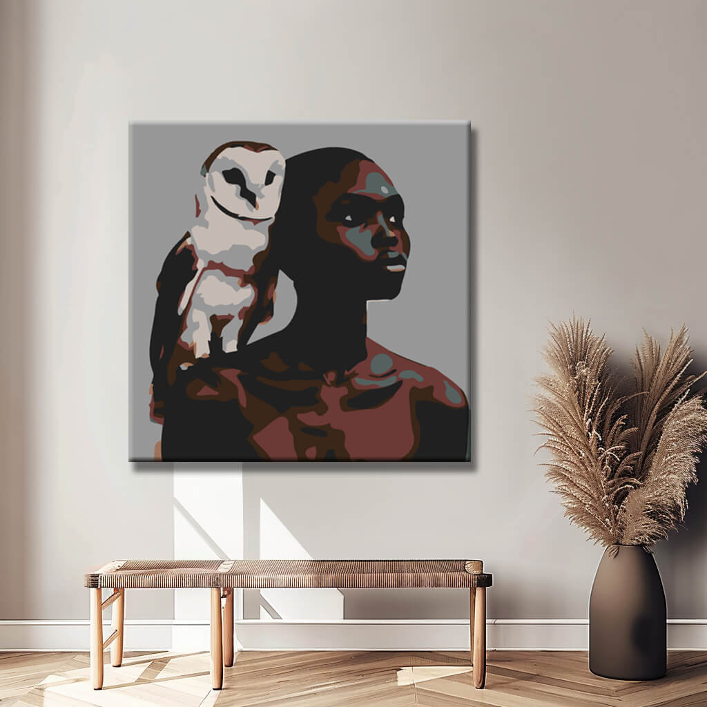 Malen nach Zahlen Kunst Frau mit weißer Eule auf Schulter
