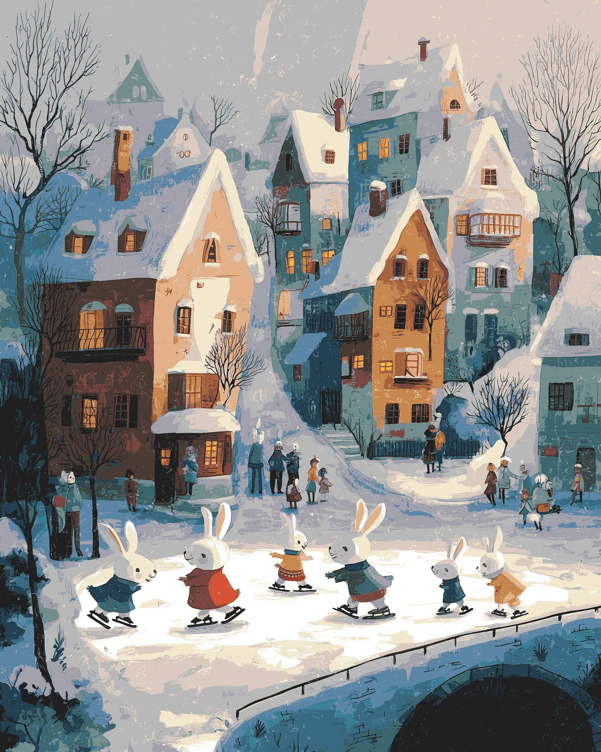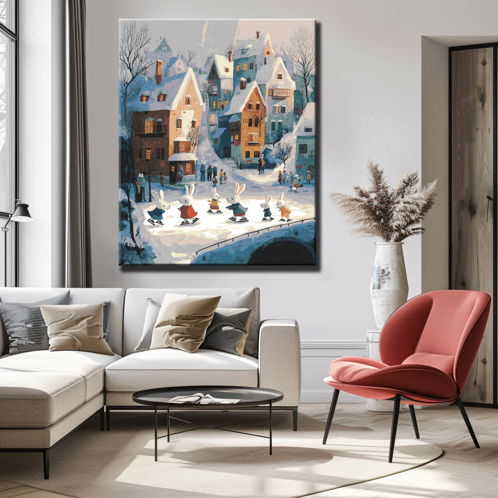 Malen nach Zahlen Hasen Familie im Winter