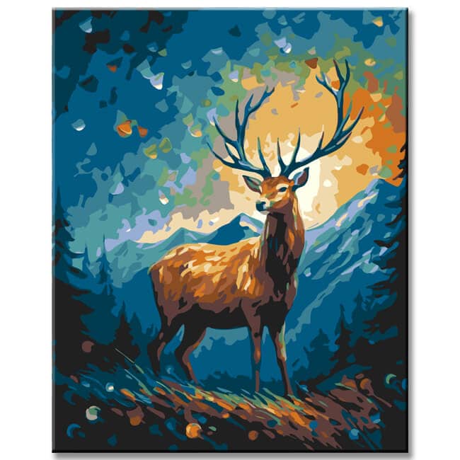 Malen nach Zahlen Hirsch in Lichtung bei Nacht