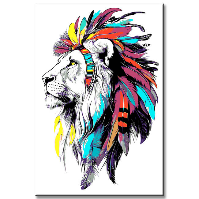Malen nach Zahlen Kunst Tier Löwe mit bunter Mähne und Federn auf dem Kopf