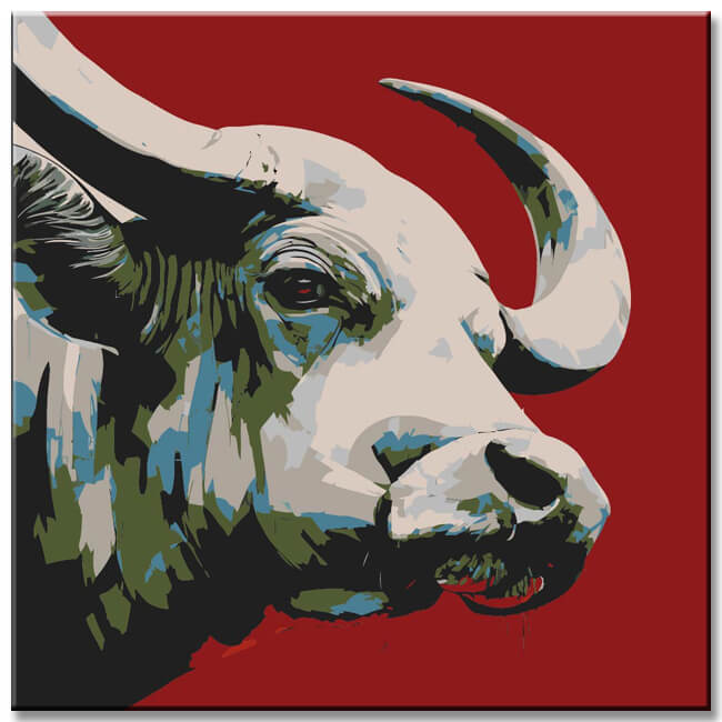 Malen nach Zahlen Kunst Tier Weißer Stier auf rotem Hintergrund