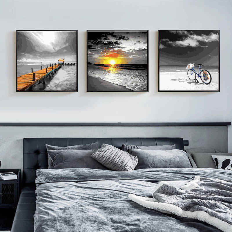 Malen nach Zahlen Urlaub Steg schwarz weiss