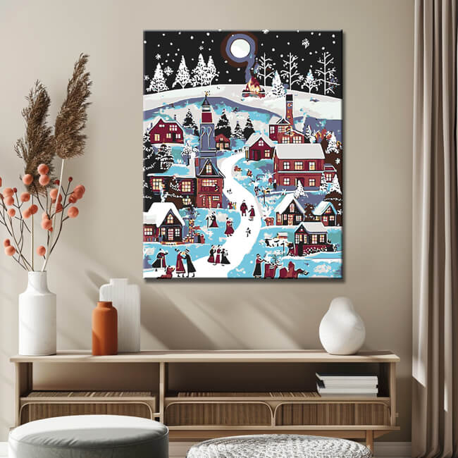 Malen nach Zahlen Weihnachten Illustration Weihnachtsdorf Winter