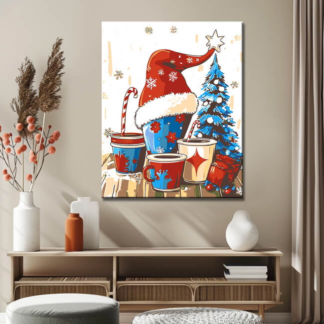 Malen nach Zahlen Weihnachten Illustration Weihnachtshut Glühwein