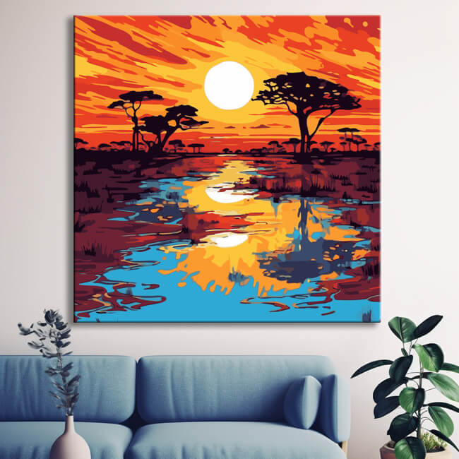 Savanne Sonnenuntergang Malen nach Zahlen