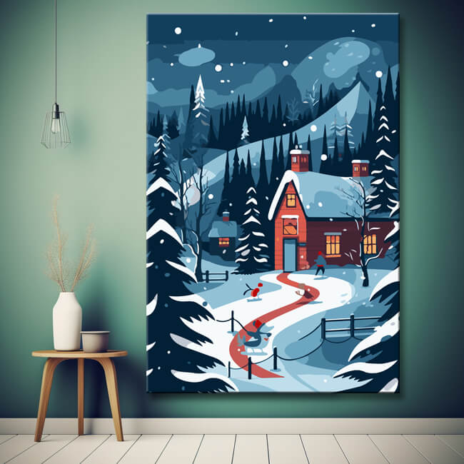 Winterlandschaft bei Nacht Malen nach Zahlen
