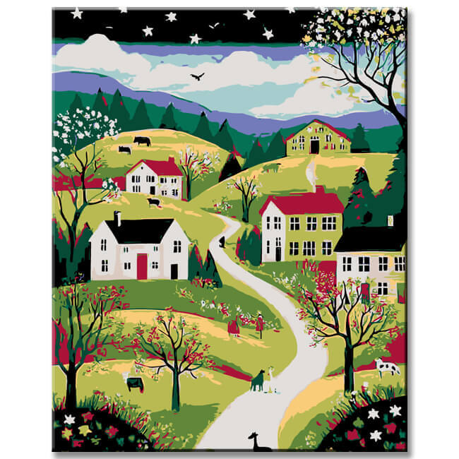 Malen nach Zahlen Kunst 7 Hügel Landschaft Ansichten