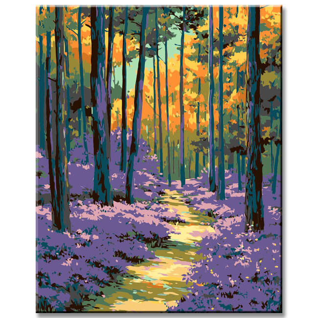 Malen nach Zahlen Kunst Natur Baumallee mit Lavendelmeer