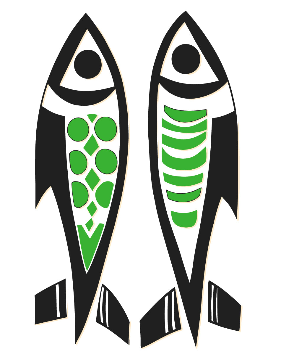 Malen nach Zahlen Strichzeichnung 2 Fische gegenüberliegend