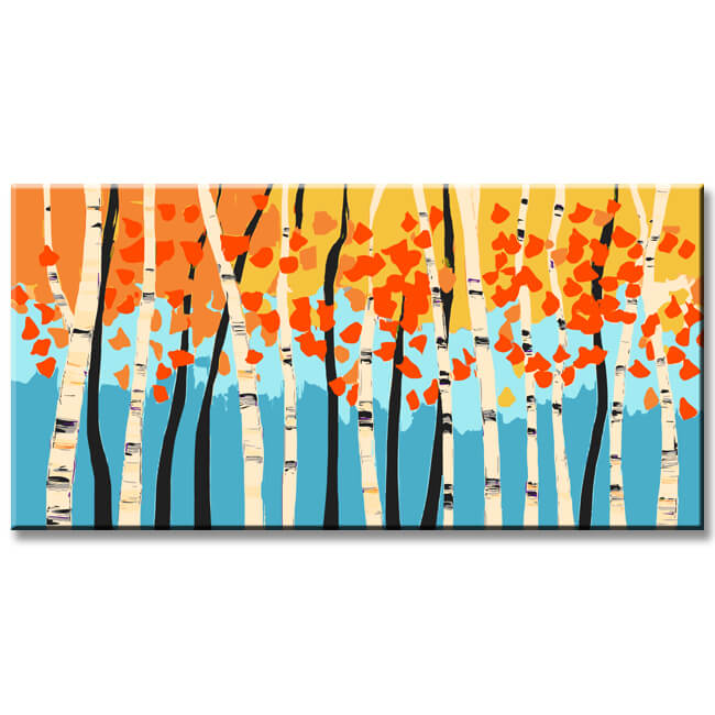 Malen nach Zahlen Kunst Abstrakte Malerei Bäume Blau Orange
